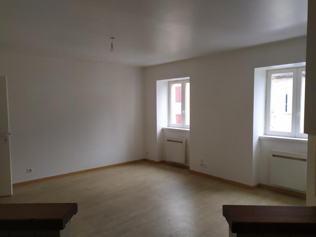 Logement de type 3 comprenant une cuisine semi-ouverte sur séjour, 3 chambres, 1 salle de bains, 1 WC. Cave. Proximité école. Chauffage au sol compris dans les charges.