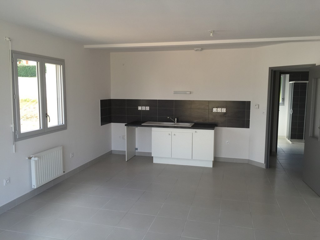 Pavillon récent avec une cuisine ouverte sur un séjour lumineux, une chambre en rez-de-chaussée et deux à l’étage, deux salles de bains