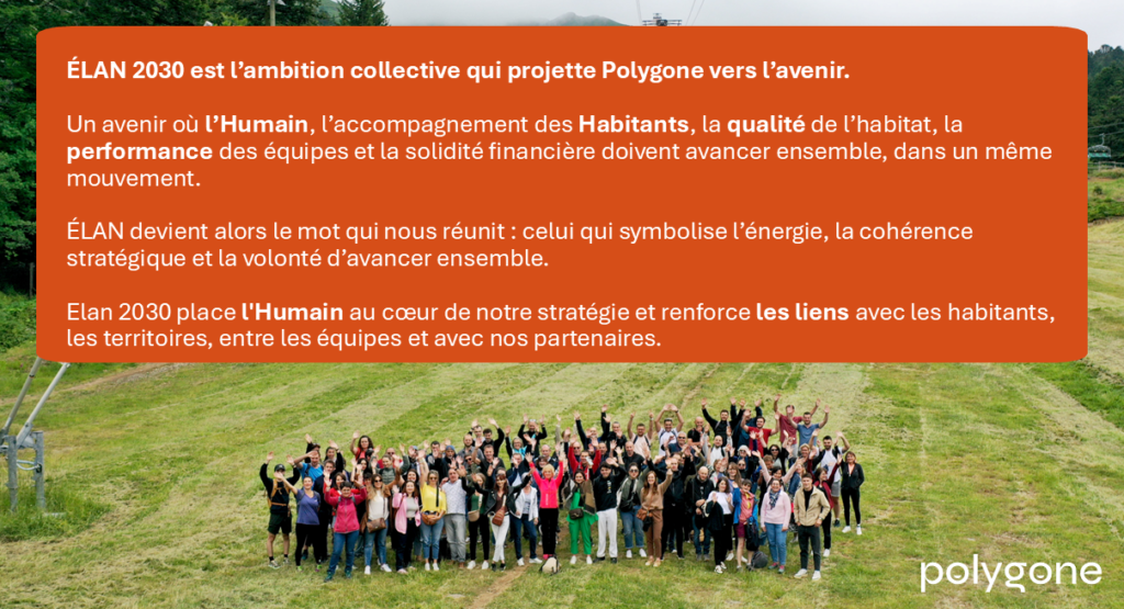 Avec ÉLAN 2030, Polygone se dote d’une feuille de route structurante pour répondre aux évolutions de son environnement, aux attentes des habitants, aux enjeux des territoires et aux transformations du secteur de l’habitat. Ce plan d’actions traduit une vision commune : construire un avenir où la proximité, la qualité de service, l’utilité sociale et la responsabilité demeurent au cœur de notre action.
