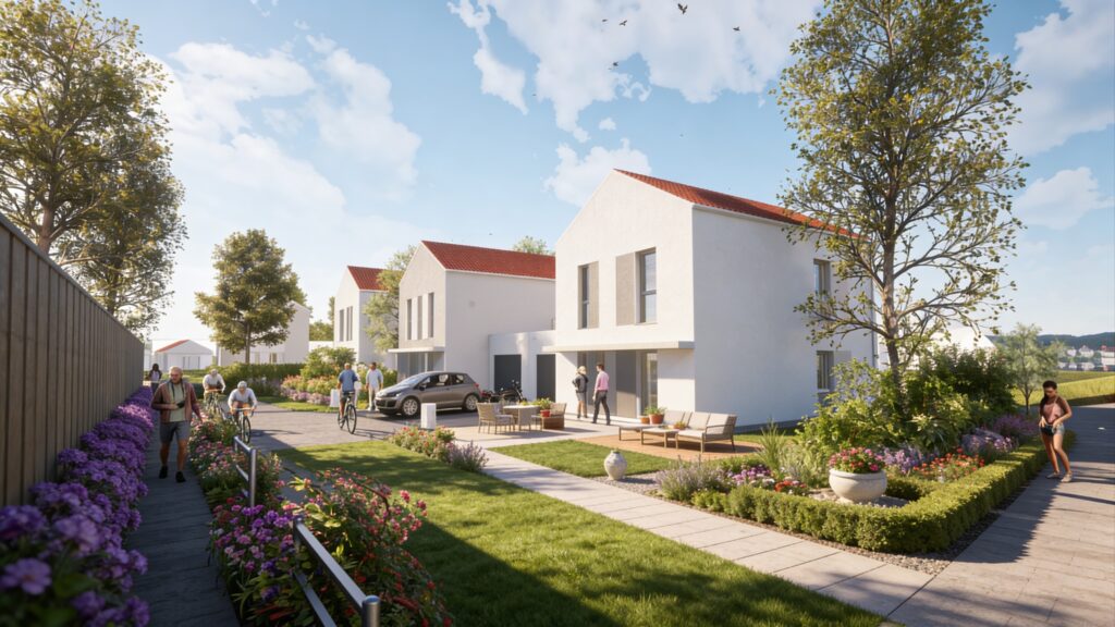🔑 Commercialisées à partir de 248 600 €, ces maisons peuvent également bénéficier, sous conditions, de leviers facilitant l’accession : TVA réduite à 5,5 %, frais de notaire réduits, absence de frais d’agence, exonération de taxe foncière pendant 15 ans et éligibilité au prêt à taux zéro.